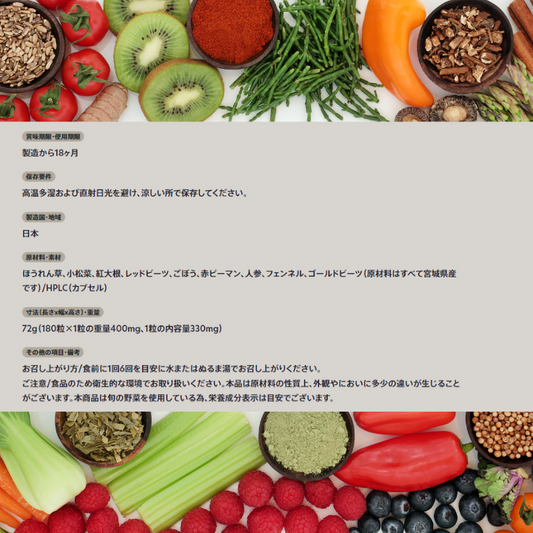 飲む粉野菜(180粒タイプ)|9種の野菜を手軽に摂れる粉末サプリ